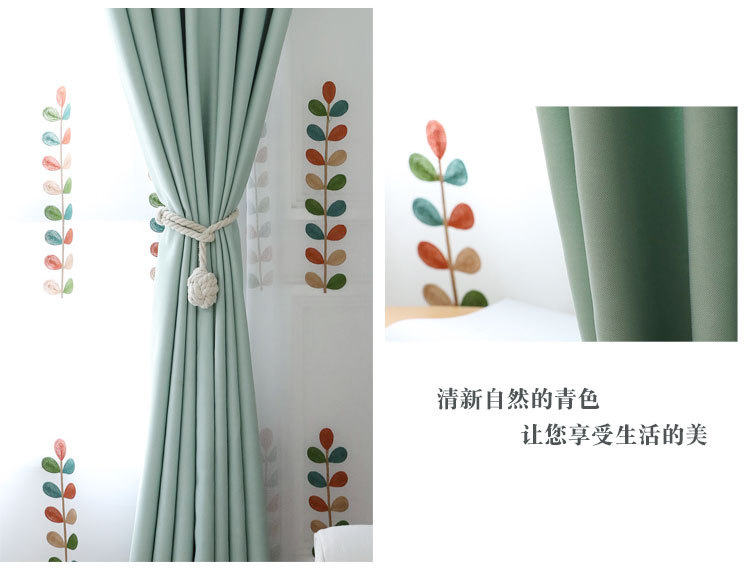 Ready madecrear beautiful Japanese and Korean curtains cotton linen embroidered curtains living room bedroom macarone powder width 4.0 * height 2.7-punching processing (one piece)