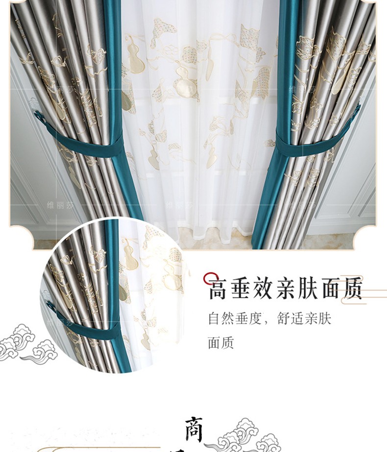 | Commodity name: Veolia new Chinese light luxury classical Chinese style with mahogany furniture living room bedroom high blackoutfaux silk satin gourd curtain ready made custom dark green cloth per meter | Commodity name: Veolia new Chinese light luxury classical Chinese style with mahogany furniture living room bedroom high blackoutfaux silk satin gourd curtain ready made custom dark green cloth per meter |